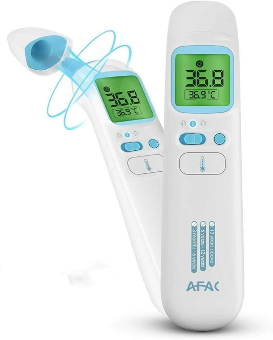 AFAC Termometro Febbre Infrarossi, Digitale Termometro Frontale Orecchio Oggetto per Adulti Bambini, Professionale Senza Contatto, Memoria 40 Letture, Display a 4 Colori
