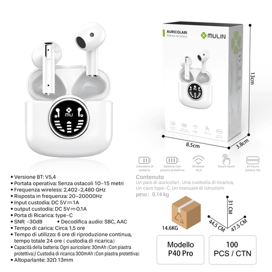 P40 Pro Cuffie Wireless con Smart Touch e LED Display