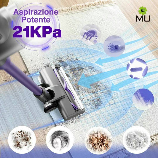 Aspirapolvere Senza Filo Ricaricabile Tecnologia Ciclonica 250W Autonomia 45 Min Luci LED(Comprarlo anche su Amazon con coupon 10%)
