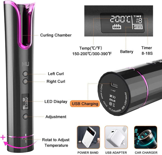 Arricciacapelli automatici Ferri arricciacapelli Bacchetta arricciatura ceramica USB Strumenti wireless per lo styling dei capelli