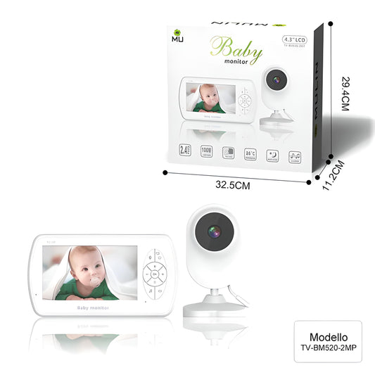 Baby Monitor Wireless No Wifi Video e Audio, Schermo LCD 4.3’’, 1080p Alta Risoluzione, Funzione VOX, Visione Notturna, Monitoraggio della Temperatura, 6 Ninna Nanne (TV-BM520-2MP)