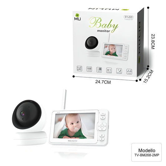 Baby Monitor Wireless No Wifi Video e Audio, Schermo LCD 5’’, 1080p Alta Risoluzione, Funzione VOX, Visione Notturna, Monitoraggio della Temperatura, 6 Ninna Nanne, Rotazione 360° (TV-BM268-2MP)