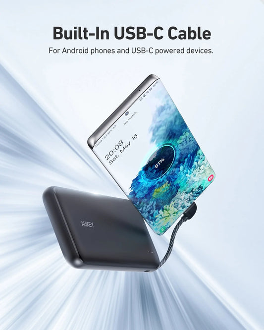 Aukey PB-N73C Power Bank Caricabatteria Portatile 10,000mAh 18W Cavo USB-C Integrato Ricarica Veloce Compatto Leggero