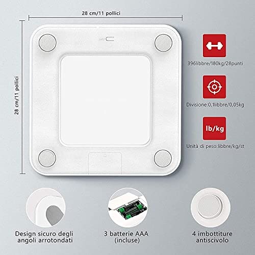 Bilancia Pesapersone Digitale, m MU Bilancia Pesapersone, Bluetooth Bilancia Pesa Persona Digitale con App-Misura Peso Corporeo, Massa Grassa, BMI, Massa Muscolare, Massa Ossea, Proteine/BIANCO